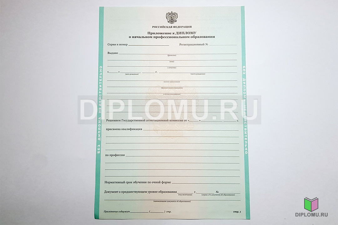 На нашем сайте Вы можете купить диплом о начальном профессиональном образовании с окончанием ПТУ в 2011, 2012, 2013 годах включительно. Ознакомьтесь подробнее с образцом диплома ниже.